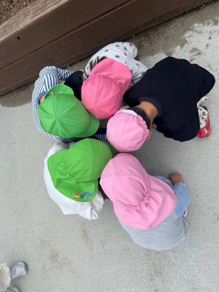 ゆず組の子どもたちは、かりん組のお兄ちゃんお姉ちゃんがする事に興味津々!
