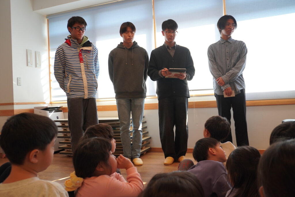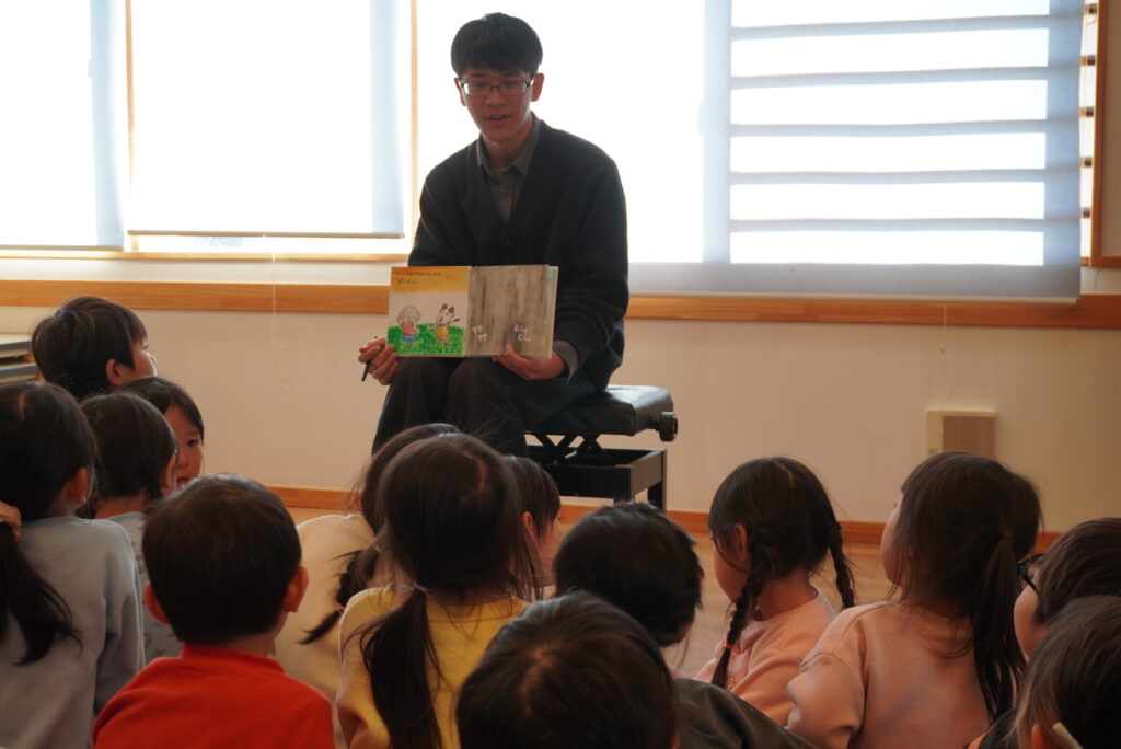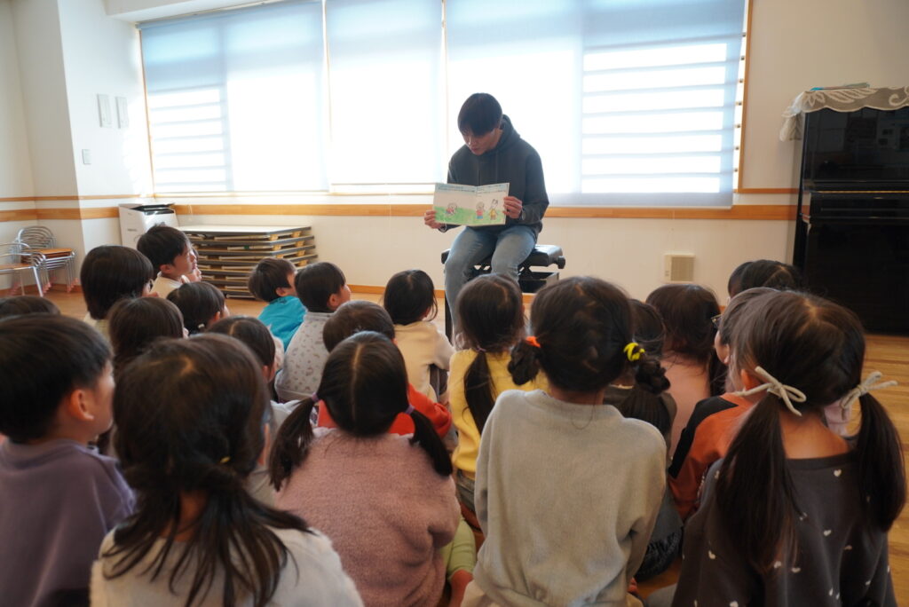 大阪公立大学高専の学生の皆さんが、「次世代の世界を担う幼稚園児や保育園児に砂漠化という存在を知ってもらう」ということを目的として、絵本の読み聞かせをしてくださいました。