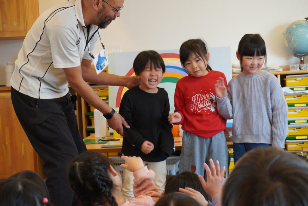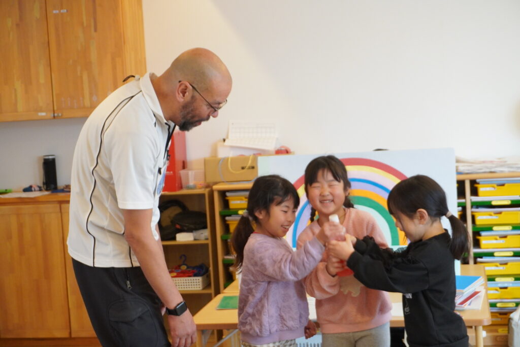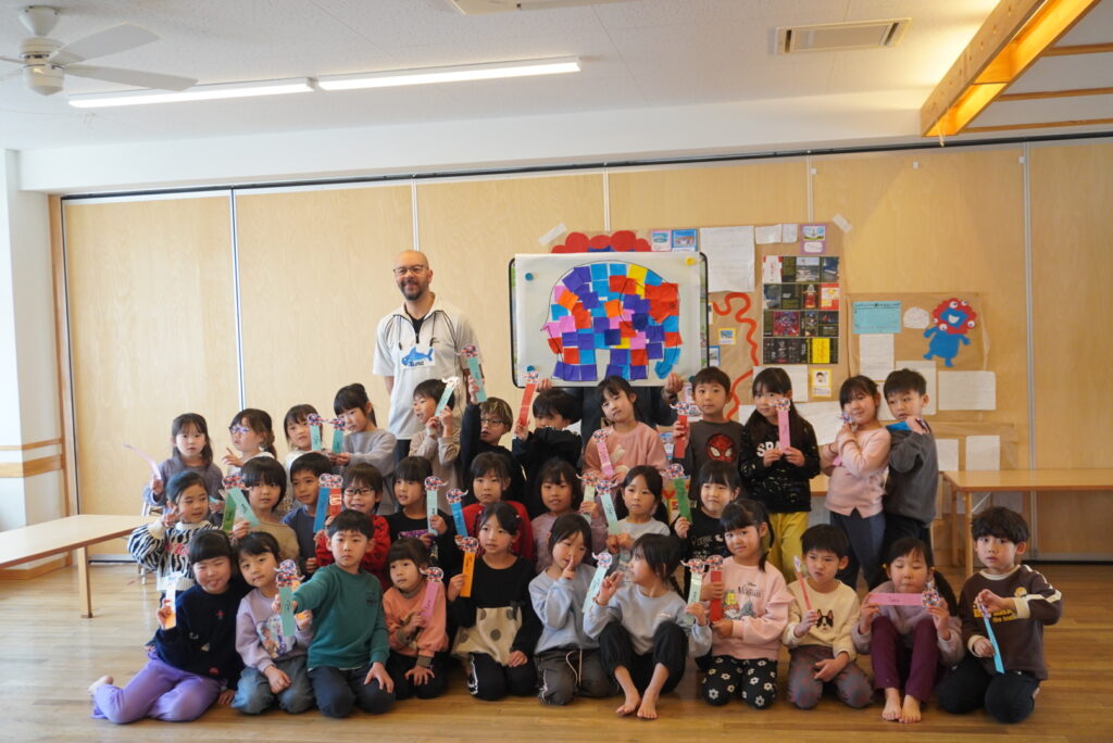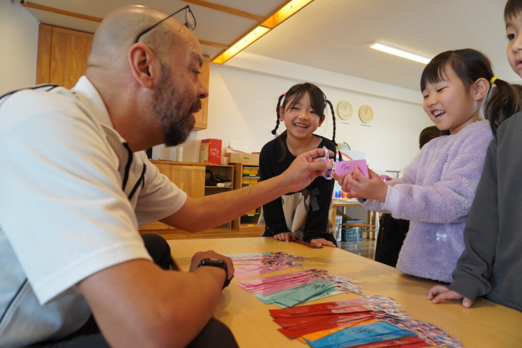 自分の欲しい色を選び、「〇〇プリーズ」貰えたら、「サンキュー」とお礼を言ったりと色んな遊びを体験しながら、子ども達にとって最高の時間となりました。