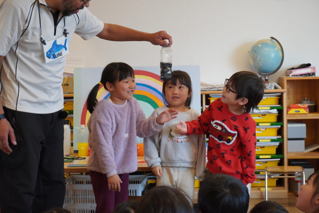 テーマが色(カラー)の時間では、マジックのように、お水の入ったペットボトルを振って色水を作ったり