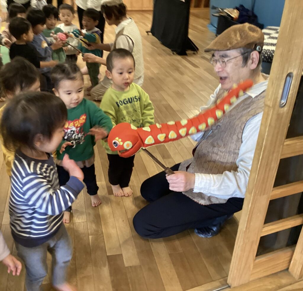 乳児クラスは「へびくんのおさんぽ」幼児クラスは「おまえうまそうだな」を鑑賞しました。