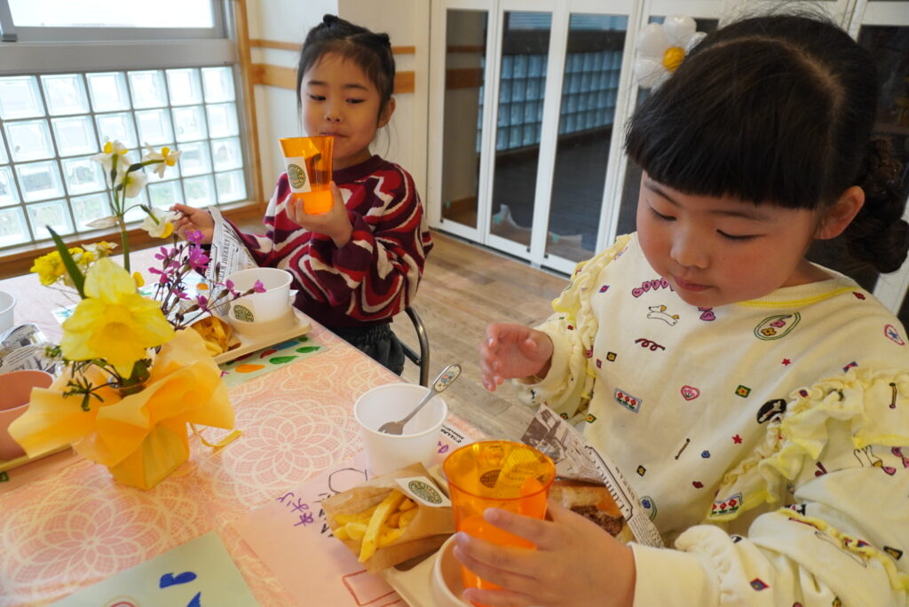 一緒に遊んだ友達と「おいしいなあ!!」とおしゃべりしながら楽しい時間を過ごしました。