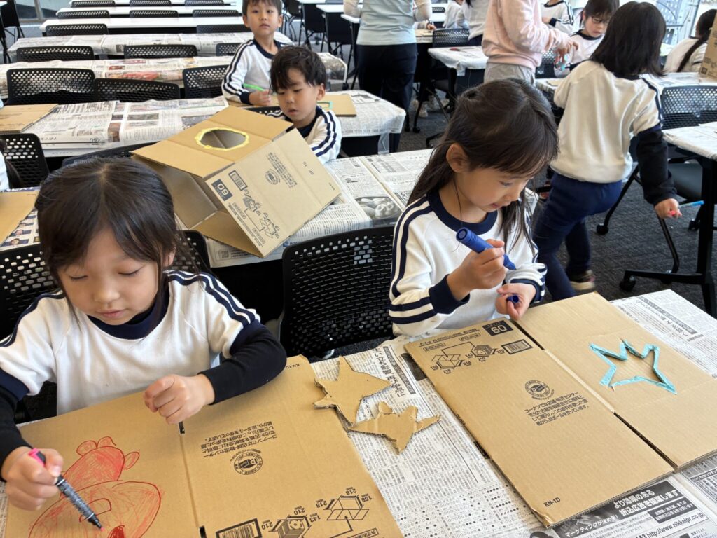 自分の欲しい色を選び、「〇〇プリーズ」貰えたら、「サンキュー」とお礼を言ったりと色んな遊びを体験しながら、子ども達にとって最高の時間となりました。